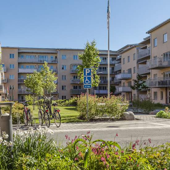 Bostad Den här lägenheten erbjuds dig som har fyllt 65 år.Tre rum och kök med öppen planlösning mellan kök och vardagsrum. Två balkonger, mot gata respektive kvarterets innergård. Generöst badrum med tvättmaskin och torktumlare som ingår i hyran. men det är möjligt att boka tid i områdets tvättstuga på Hjalmar Brantingsgatan 48 C. Beskrivning: Hall: Klinkergolv innanför ytterdörren, i övrigt parkett. Vitmålade väggar. Kök: Vita köksluckor och bänkskiva i svart laminat. Parkettgolv och vitmålade väggar. Förberett för egen diskmaskin (ingår e...