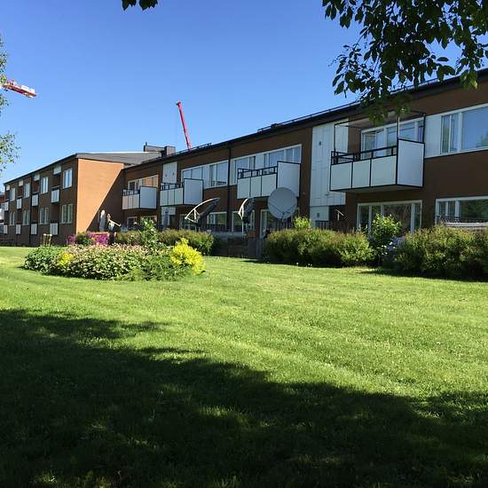 Bostad Bostaden har genomgående parkettgolv samt målade väggar. Köket är utrustat med spis med häll samt kyl/frys. Badrummet är helkaklat samt har handdukstork. Bostaden har även säkerhetsdörr. Alla lägenheter i området har balkong eller uteplats. Placeringen på förråden varierar, vanligtvis har man sitt förråd i bostaden men i vissa fall kan förrådet vara beläget i trapphuset eller i källaren. I området finns gemensamma tvättstugor men det är även möjligt att sätta in en egen tvättmaskin/diskmaskin i bostaden. Område Trevligt och b...