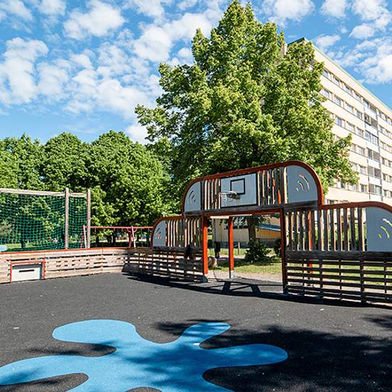 Bostad Lägenheten har separat kök och vardagsrum, toalett med dusch samt balkong i västerläge som nås via vardagsrummet.Interiör:Vardagsrummet: Träfärgat plastgolv fr. 1984 , blå väggar fr . 2009Kök: Vita luckor fr. 2009, grå väggar fr. 2009 ,grått linoleumgolv fr. 1993.Badrum: Vitt kakel med blå bård , ljusblå klinker fr. 1999.Hall: Ljusgrå plastmatta fr. 1993, grå väggar fr. 2009.Sovrum 1: Ljusblå plastmatta fr 1984. , blå väggar fr. 2009. Sovrum 2: Grå mönstrad tapet fr.2009, ljusbrunt plastgolv fr. 1984Ny hyresgäst kan kostnadsfritt bes...