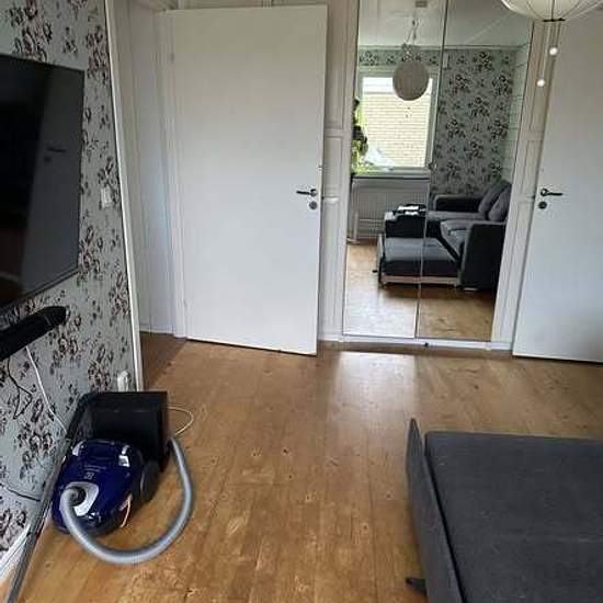 Bostaden ligger i ett lugnt naturnära område med skogen bara några meter från husknuten. Bostaden är en avskild egen del av hus med egen entré/ytterdörr. Lekplatser, förskola, skola busshållplats, ICA to Go, idrottsplats, postlåda mm ligger inom en radie om några minuters gångväg från huset. Huset är ett enplanshus som är renoverat och anpassat för att även passa personer med ett visst särskilt behov. Ytterdörr med elektroniskt lås leder in i hall/vardagsrum, till höger ligger det lilla men ganska kompletta köket med inbyggd Micro, diskmaski...