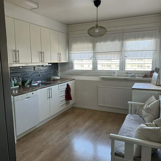 En fin och möblerad 3a med stor balkong uthyres pga arbete i annan stad. Hyr ut i minst 6mån. I hyran ingår parkering, el, värme, vatten, bredband, källarförråd. Finns möjlighet till att betala för eget bredband för att få reducerad hyra med 500kr. Kök: Välutrustad med diskmaskin, mikro, kyl, frys mm. Sovrum: Ett större och ett mindre sovrum. Badrum: Toppmatad tvättmaskin finns. Hall: Gott om förvaring. Balkong: Inglasat och möblerat. Aliminiumbänkarna kan tas bort om så önskas. 2min till busshållsplats. OBS: TV:en samt pizzaugnen...
