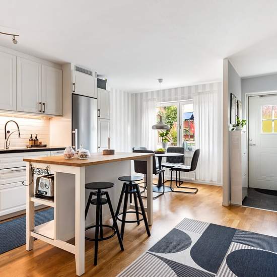 Välkommen till Runöbacken 36! Här möter du ett mycket välplanerat radhus med 4 rum och kök varav 3 rymliga sovrum, ett luftigt och socialt kök med plats för ett större matbord samt ett generöst vardagsrum som bjuder in till umgänge. Bostaden erbjuder dessutom två fina badrum, altan både på fram- och baksidan samt garage i länga. Huset är gediget byggt med betong mellan både grannhus och våningsplan, vilket ger en mycket tyst och behaglig boendemiljö. Området är barnvänligt och bilfritt, med flera lekplatser alldeles i närheten. Fiber är sjä...