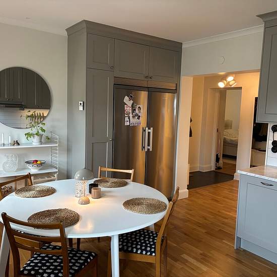 Fin och ljus 4a på andra villagatan 7. Högst upp i huset med balkong. Går att ställa sig i kö för parkering. Hyra: 16 720:-/månad