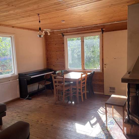 Vi är tre syskon som hyr ut vårt älskade landställe i en längre period. Stuga med nyinstallerad värmepump (luft luft- teknologi). El tillkommer. Mysigt litet hus med stort badrum, kök, 3 sovrum, vardagsrum och vedeldad spis. Ligger i Nyckelby på vackra Ekerö. Nära bad och naturstigar i skog. En trädgård finns med odlingsmöjligheter. Stor terass med ramp för barnvagn eller rullstol. 500 m till Ica Nyckelby. 800 m till Rosenhills trädgårdscafé och musteri. 50 minuter till Stockholm city. Serviceavgift för hyresgäst: 654