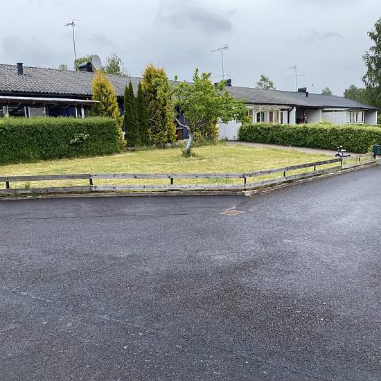 Ett radhus med gavelläge. Praktiskt och bra boende i 1-plan med ihopbyggt garage. Lugn och bra gata i villaområdet. Serviceavgift för hyresgäst: 402