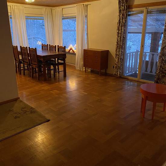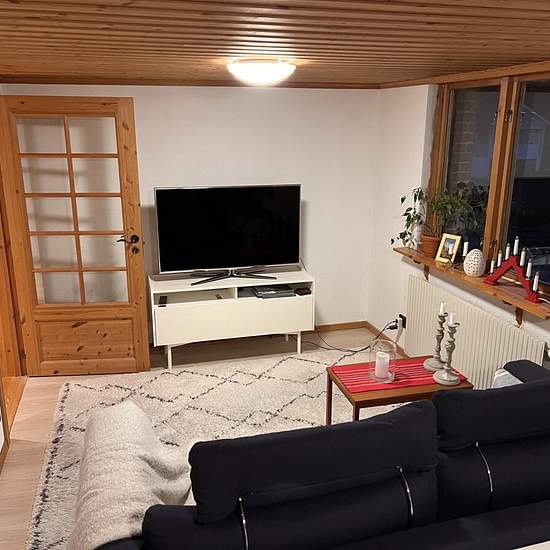 1610 kvm tomt med uteplats och grill. Odlingsterrass. Parkering för flera bilar. 134 kvm boyta. 2 våningar. 2 kök. 2 badrum. Bastu. 3 sovrum och stort vardagsrum. Bredband. Nytt tak 2 år sen. Nytt badrum 2 år sen. Luft/vatten värmepump för billig uppvärmning. Fint villaområde mellan Vistaberg/Källbrink, Huddinge. Gärna långtidsuthyrning. Möblerat eller omöblerat kan vi diskutera. Övervåning: badrum, sovrum, kök och stort vardagsrum . Nedervåning: 1 sovrum, 1 vardagsrum som kan vara sovrum, kök, bastu , dusch och toalett. 19 310 kr + el. Ser...