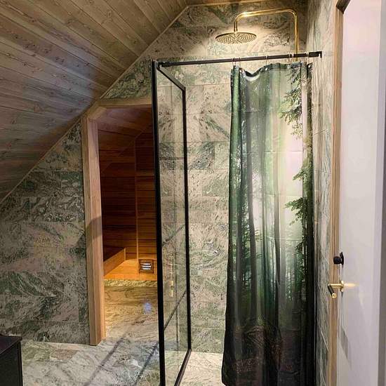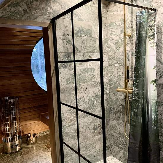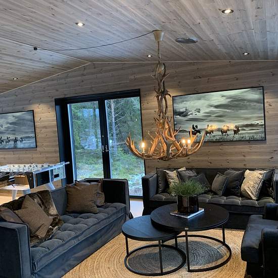 Huset om ca 150 kvm stod färdigbyggt okt-21, och har allt man kan önska. Fullservice med lakan och handdukar. Huset har 3 sovrum med dubbelsängar. Ett med en platsbyggd våningssäng för 4 personer. 1 Magiskt Master Bedroom med panorama inne i skogen. Man vaknar mitt i naturen. 65” Frame TV. Konstverk avstängd och all underhållning som finns streamad påslagen (inbyggd Apple TV). En suite med eget exklusivt badrum i kålmordsmarmor. Rymlig dusch med takdusch och bastu. Fullt utrustat kök och matplats på entréplan med vitvaror från Miele. Bad...
