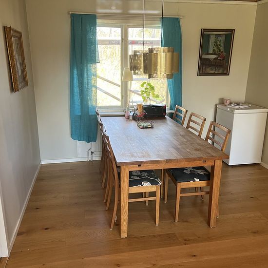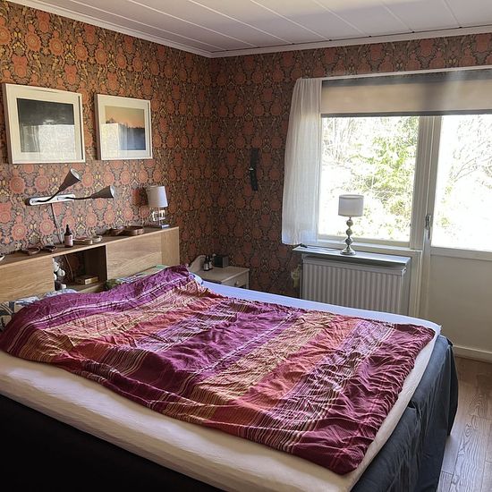Fin villa med stor trädgård och bra pendlingsavstånd till både Stockholm och Uppsala . Nära till mälaren och Lunsen skogen Busshållplats 200 meter + en Trevlig Stuga på ca 22 kvm ( ej el/ vatten ) som gästande tex kan använda vid besök. OBS! Ett fjärde sovrum kan ordnas efter överenskommelse Serviceavgift för hyresgäst: 712