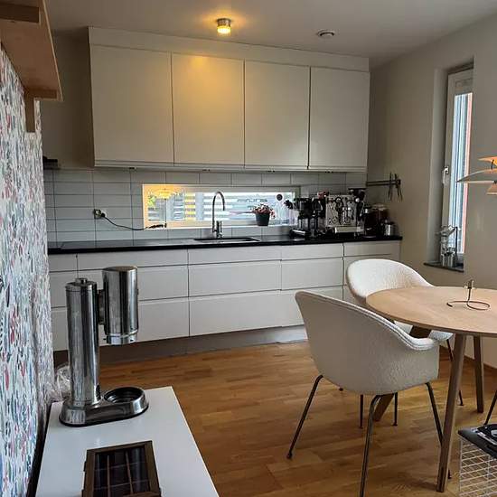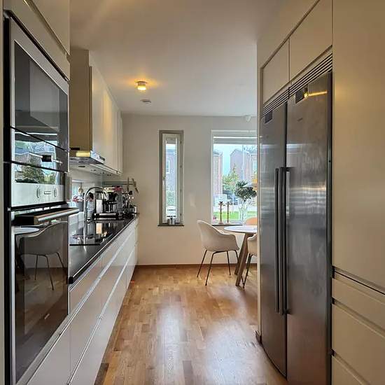 Beskrivning Havsnära modernt kedjehus i Lomma hamn. Välkommen till ett modernt och välplanerat hus byggt 2012, med genomgående ekgolv och fräscha ytskikt. Bostaden har ett stilrent kök från HTH i vitt, stora fönsterpartier och en trivsam atmosfär med mycket ljusinsläpp. På entréplanet möts du av en rymlig hall med klinkergolv och ett badrum med dusch. Till höger ligger köket, och i direkt anslutning finns ett stort vardagsrum med fönster från golv till tak – helt insynsskyddat och med utsikt mot trädgården. Här finns även en vedeldad kamin s...