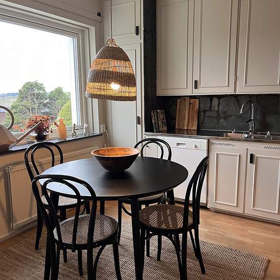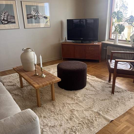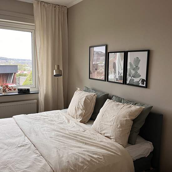 En villa med tre lägenheter. Vi som äger fastigheten bor på översta våningen. Alla lägenheter har privata entréer. Lägenheten på entréplan hyr vi nu ut. Lägenheten har renoverats i april 2025. Den är stilrent möblerad. Men kan också hyras omöblerad. Tre sovrum med nya dubbelsängar. Soffa och matbord plus stolar. Alla sovrum har garderober. En toalett med duschkabin samt tvättmaskin. Lägenheten har en terrass/balkong. Parkering finns utanför fastigheten. Vi hyr ut främst till någon som är mellan bostad. Som kan se detta som ett mellanboend...