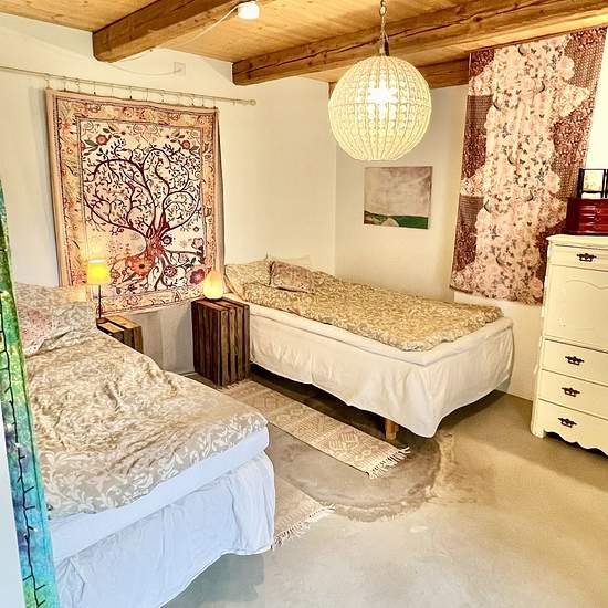 Bohemiskt boende i den idylliska lilla byn Rörum mitt på Österlen! Uthyres veckovis under sommaren och långtid from september tom maj 2027. 3 km till underbara, magiska stranden Knäbäckshusen. I byn hittar ni Mandelmanns trädgård, restauranger, galleri, Forsemölla vattenfal, Waldorf förskola och skolal och Forse cidergård. Närheten till nationalpark Stenshuvud, Kivik och Simrishamn. Ca 6 kn till Gyllebo sjön där man kan ta varma kvällsdopp när solen har gått ner på stranden. Privat, stor trädgård, uteplats, grill och även campfire. Huset är...