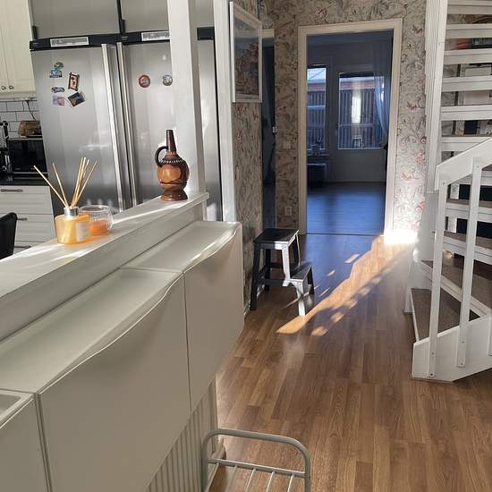 Fin och fräsch hörnlägenhet med stor uteplats – nära kommunikationer och service Välkommen till en möblerad och välplanerad lägenhet i ett lugnt och trivsamt område. Bostaden ligger i ett hörnläge med generös uteplats runt huset – perfekt för dig som vill njuta av solen hela dagen. Utemöbler finns både på fram- och baksidan. Planlösning: Bottenvåning: Vardagsrum, kök samt toalett med dusch Övre plan: Tre sovrum, klädkammare och en toalett med badkar Kommunikationer: Busshållplats precis i närheten Ca 20 minuter till Gullmarsplan Di...