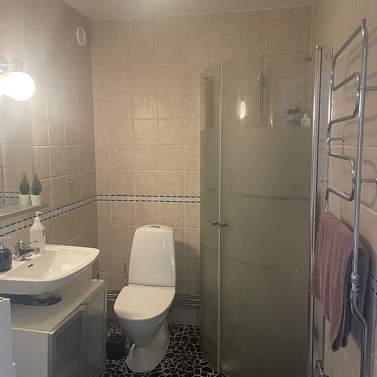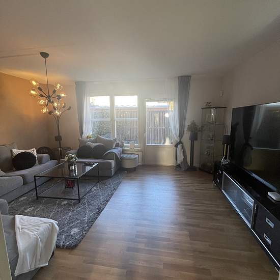Fin och fräsch hörnlägenhet med stor uteplats – nära kommunikationer och service Välkommen till en möblerad och välplanerad lägenhet i ett lugnt och trivsamt område. Bostaden ligger i ett hörnläge med generös uteplats runt huset – perfekt för dig som vill njuta av solen hela dagen. Utemöbler finns både på fram- och baksidan. Planlösning: Bottenvåning: Vardagsrum, kök samt toalett med dusch Övre plan: Tre sovrum, klädkammare och en toalett med badkar Kommunikationer: Busshållplats precis i närheten Ca 20 minuter till Gullmarsplan Di...