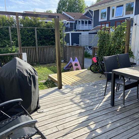 Möjligt att hyra depositionsfritt genom Samtrygg. Månadskostnad: 20700 kr. ________________________________________________________________ Snabbast bokar du visning genom att följa denna länk till Samtrygg: Här hittar du även fler bilder och mer info. ________________________________________________________________ Gavelradhus i populära Vega, Haninge. Renoverade WC, övriga rum och kök är i fint skick. Luft/luft värmepump med AC. Värmegolv i entréhall & wc. Uteplats fram och baksida. Balkong övervåning. 5-10mim promenad till sk...