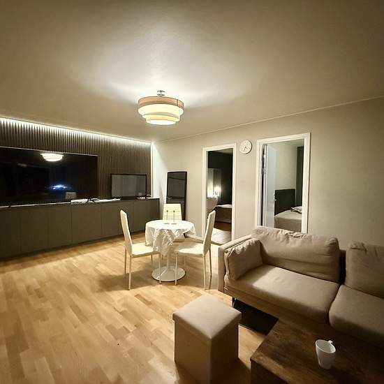 Stor och ljus 4:a uthyres i centrala Hagsätra Jag hyr ut min fina renoverade bostadsrätt på Vintrosagatan 1 då jag ska flytta in med min pojkvän. Lägenheten är en rymlig och välplanerad 4:a på ca 86 m², belägen i ett lugnt och trevligt område nära tunnelbana, butiker och grönområden. Om lägenheten: Tre sovrum, två med inbyggda garderober. Vardagsrum med inbyggd byrå, brun soffa och vitt runt matbord med sex vita stolar. Kök med vitt matbord och gott om förvaring. Två badrum – ett större och ett mindre. Alla rum har gardiner i grå, beige ...