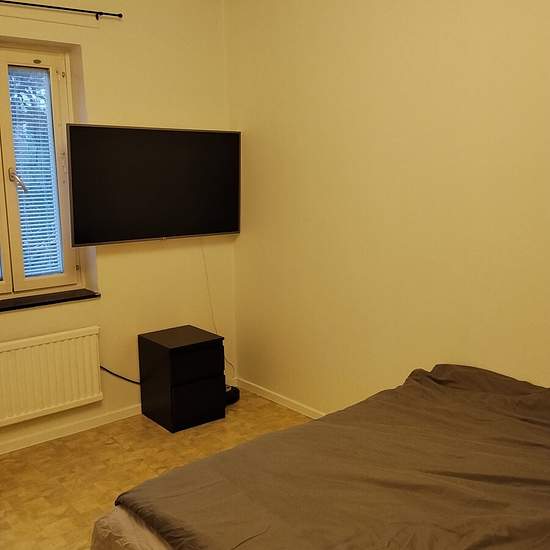 Jag en etage på 105 kvm.vill hyra ut ett rum på nedre våningen. Rummet är ny målat och möblerat, ny säng (160 cm)ny madrass ny täcke. Har 50 tumm smart tv. Egen toalett, gemensam dusch, tvättmaskin.köket och matsalen är på översta våningen. Jag bor ensam,har 2 pojkar som är 13 och 14 år gammla som brukar komma förbi och hälsa mig. Serviceavgift för hyresgäst: 297