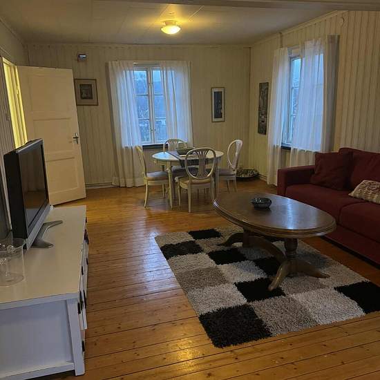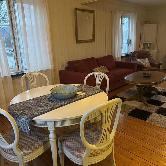 Planlösning Rymlig lägenhet om ca 80 m² på våning 2. Lägenheten har två separata sovrum samt gemensamma sällskapsytor. Ett sovrum är möblerat med dubbelsäng, det andra med våningssäng. I vardagsrummet finns även bäddsoffa, vilket ger totalt upp till sex sovplatser. Planlösningen passar både familj, par eller mindre hushåll som vill ha gott om utrymme. Kommunikation Mycket goda kommunikationer. Tåg och buss finns bara någon minuts promenad bort med smidiga förbindelser till Borås och Varberg. Göteborg Landvetter flygplats nås på cirka 30 min...