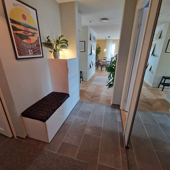 Vi hyr ut våran välplanerade och fräscha 4:a i lugna, mysiga Minneberg pga arbete på annan ort. Lägenheten hyrs ut möblerad och den är möblerad för två vuxna. Lägenheten ligger i områdets bästa läge, ett stenkast från vattnet med inglasad balkong. Den totalrenoverades för 4 år sedan och är väl omhändertagen. Egen tvättmaskin och torktumlare finns. 10-15 minuters promenad till Alviks t-bana. Matbutik samt busshållplats till Alvik finns 2 minuters promenad bort. Gott om grönområden, lekplatser, grillplatser och badplatser i området. Idyll...