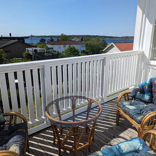 Stor och ljus lägenhet med havsutsikt i skärgårdsvilla uthyres. Bergen, vandringsleder och havet är bara några steg utanför ytterdörren. Endast 40 min från centrala göteborg. Lägenheten om 112 m2 har 3 sovrum och ett stort kök i anslutning till vardagsrummet. Såväl kök som vardagsrum har stora fönster mot havet i söder/sydväst. Hall, badrum, tvättstuga med extra toalett och klädkammare ryms också i lägenheten. Lägenheten har en balkong i söder med utgång från kök och master bedroom och en altan i väster med utgång från ett av sovrummen. I ...