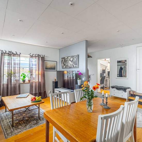 En ombyggd affärslokal på markplan. Gångavstånd till tågstationen. Ingår vatten, golvvärme, el, internet och tv-kanaler. Finns förråd. Kattlucka på dörren. Vi har försökt sälja den här lägenheten som vi har flyttat ifrån men går trögt så vi pausar försäljningen i ett år. Så det är bara 1 år uthyres. Angående möbler så står gråa soffan kvar i vardagsrummet och en 140-säng i ena sovrummet. Digital visning: Serviceavgift för hyresgäst: 544