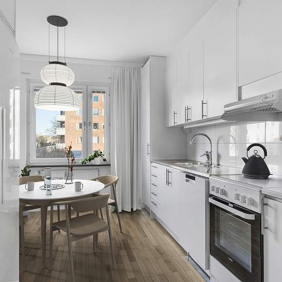 Välkommen till en välplanerad och ljus fyrarummare på Stenkvistavägen 19 B, där moderna materialval möter en hemtrevlig känsla. Lägenheten har genomgående ekparkett och ljusa ytskikt som skapar en harmonisk och luftig atmosfär i varje rum. Det renoverade köket är både elegant och praktiskt, utrustat med induktionshäll, varmluftsugn och diskmaskin. Här finns gott om arbetsyta och naturligt ljus, och från köket når du dessutom den trevliga balkongen. Badrummet är helkaklat och ger en exklusiv känsla med golvvärme, dusch med vikbara glasdörrar ...
