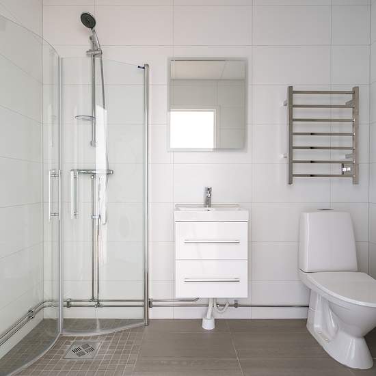 Det här är en ljus och härlig bostad på 4,5 rok. Lägenheten har målade väggar i vitt och ekparkett. I hallen finns klinkergolv i grått. Köket har vita luckor med stilrena stålhandtag och är utrustad med kyl/frys, diskmaskin, inbyggnadsugn, induktionshäll, fläkt och mikro. Lägenheten har ett ljust helkaklat badrum med golvvärme som går i tonerna vitt och grått samt en liten gästtoalett. Här finns bekvämligheter som tvättmaskin och torktumlare. Duschdörrar i glas som lätt viks undan för att skaffa mer utrymme, kommod och spegel med belysning. ...
