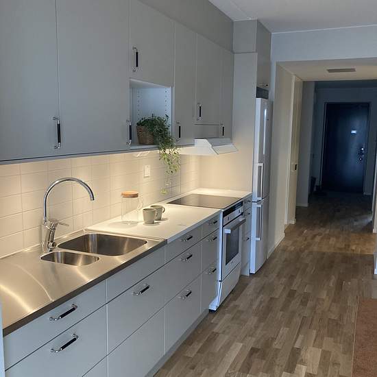 Väl disponerade ytor, stort ljusinsläpp och med omsorg vald inredningen av hög kvalitet med lång livslängd, bra funktion och omtanke om miljön. Ljusa och neutrala färgtoner har valts så att de lätt passar ihop med andra färger. Alla lägenheter har egen balkong. Det finns avställningsytor och förvaringsutrymmen för allt som man behöver - porslin, bestick, hushållsmaskiner och mycket mer. Köksluckorna är släta, stänkskyddet är av kakel och bänkskivan av laminat. Ytorna är tåliga och lättstädade. Av samma anledning är golven av ekparkett och b...