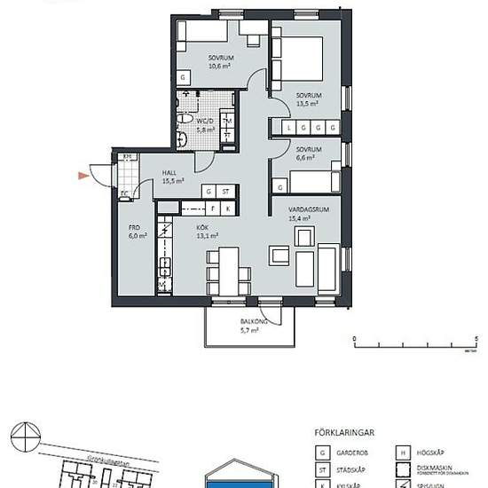 Denna lägenhet är på 90 kvm och ligger på våning 5. Månadshyra 12 345 kronor i hyran ingår vatten och värme. Kostnad för varmvatten tillkommer