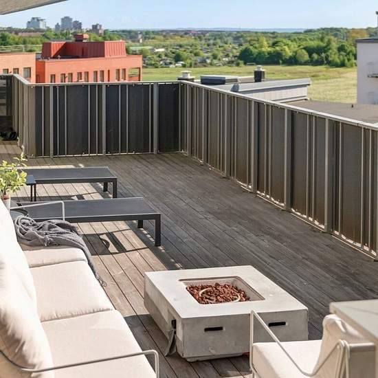 Nu finns en unik möjlighet att hyra en exklusiv takvåning om 97 kvm, högst upp i huset på attraktiva Kronovallsgatan 4 i Helsingborg. Lägenheten är ensam på våningsplanet, vilket ger ett privat, tyst och insynsskyddat boende. Bostaden håller hög standard med ljusa, moderna ytskikt och en genomtänkt planlösning. Det rymliga vardagsrummet öppnar upp mot en generös terrass i soligt läge med panoramautsikt över havet – en perfekt plats för avkoppling, middagar och sociala tillställningar. Lägenheten erbjuder tre sovrum med flexibla användnings...