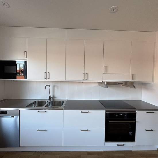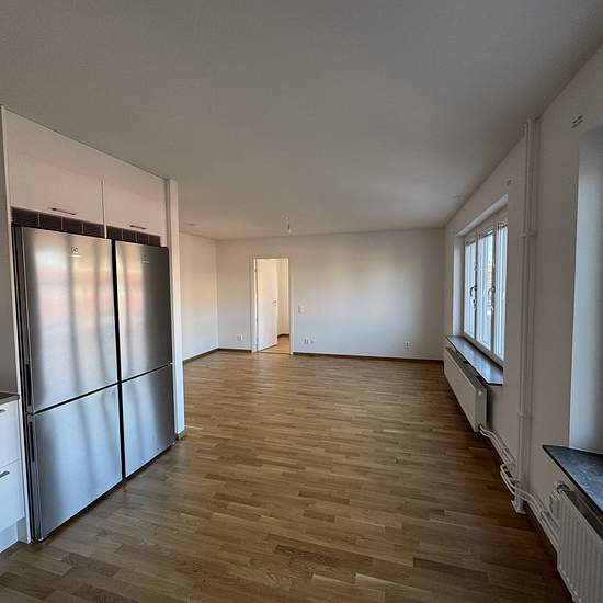 Upptäck en rymlig och välplanerad 4-rumslägenhet om 86 kvm på våning 3 – ett hem som erbjuder gott om plats för hela familjen. Bostaden har en genomtänkt planlösning med generösa sociala ytor och flera sovrum som enkelt kan anpassas efter behov, oavsett om det gäller sovrum, arbetsrum eller hobbyrum. Lägenheten har ljusa väggar och parkettgolv i ljus ek, vilket skapar en modern och inbjudande känsla i hela bostaden. Köket är stilrent och funktionellt med vita luckor, rostfria handtag, bänkskiva och stänkskydd i laminat samt utrustat med ros...