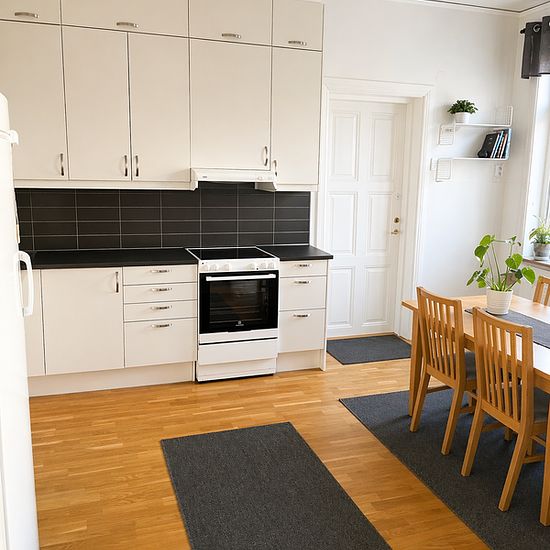 Denna fastighet är belägen mitt på Malmen i centrala Kalmar. I huset finns 8 lägenheter fördelade på 1–4 ROK. I fastigheten finns det lägenhetsförråd och gemensam tvättstuga. Denna lägenhet har entré i markplan och där nås du av en liten hall. Via denna hall kommer du sedan upp i lägenheten via ett inre trapphus. Miljöhus med möjlighet till viss källsortering finns i anslutning till fasigheten. Fiber och tv levereras via ViaEuropa, för mer info se Bilderna i annonsen är exempelbilder som utgår från bilder tagna i lägenheten. Dess exa...
