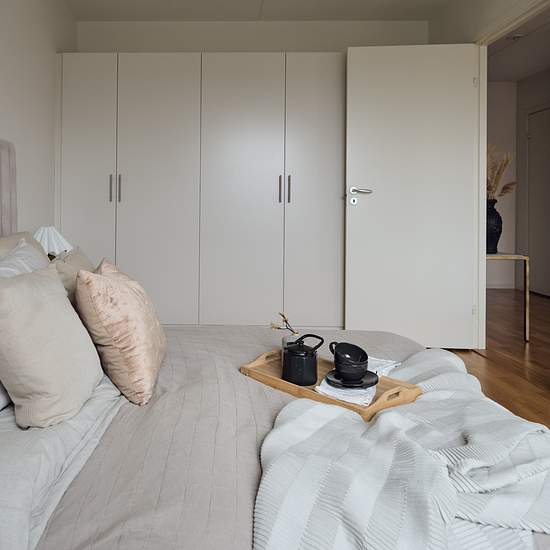 Välkommen till en fyra med två balkonger! Välplanerade 87 kvadratmeter med ljus och fräsch interiör, vitmålade väggar och genomgående parkettgolv. I den rymliga hallen finns ett praktiskt klinkergolv samt gott om förvaring i flera garderober. Vidare in i hemmet möts du av ett stilrent kök från Marbodal med vita skåpsluckor och vitt kakel ovanför arbetsytorna. Köket är utrustat med diskmaskin, mikrovågsugn och kärl för sopsortering, och den öppna planlösningen mot matplatsen ger en inbjudande och social atmosfär. Från köket nås en mindre b...