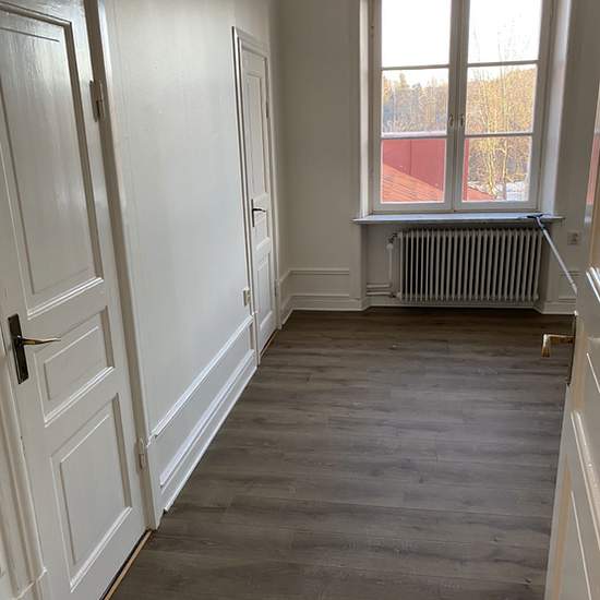 Stor fin lägenhet med högt i taken cirka 3 m , och stora listningar samt äldre stil i dörrar med mera. Väldigt rymligt och ljus då det är stora fönster i bostaden. En våning och livsstil inte som en liten lägenhet. I Hyran ingår värmen och varmt vatten samt sopor och eventuellt internet via fiber med då det just nu är under installation. Obs 4 sovrum med ett mindre då inräknat. Serviceavgift för hyresgäst: 406