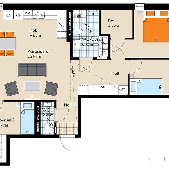 Välkommen hem till Elinegård! Här väntar en ljus och välplanerad fyra på fjärde våningen – en hörnlägenhet om cirka 89 kvm med generösa ytor och en modern öppen planlösning mellan kök och vardagsrum. Från vardagsrummet kliver du ut på balkongen i västerläge där du kan njuta av härlig kvällssol. Bostaden bjuder på gott om förvaring, med praktisk skjutdörrsgarderob i sovrummet och ett eget förråd inne i lägenheten. Här finns också ett helkaklat badrum med både tvättmaskin och torktumlare, samt en smidig gäst-WC – perfekt för familjelivet el...