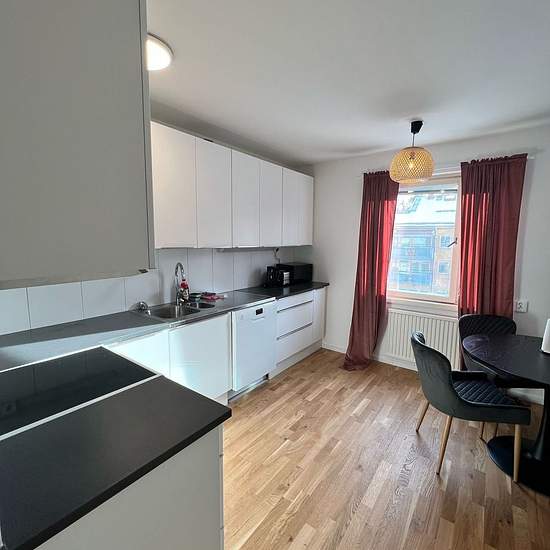 Modern och nyrenoverad lägenhet med 3 sovrum uthyres. Bostaden är fullt möblerad med stilrena och funktionella möbler, redo för inflyttning. Ljusa ytor, välutrustat kök och bekvämt vardagsrum gör den idealisk för företagsboende. Uthyres enbart till företag. Modern and newly renovated apartment with 3 bedrooms for rent. The property is fully furnished with stylish and functional furniture, ready for immediate move-in. Bright spaces, a well-equipped kitchen, and a comfortable living room make it ideal for corporate housing. Available for rent...