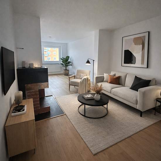 Kontakta mig så hjälper jag dig att hitta din nya bostad. Emilia Önnerth, Uthyrare Fastighets AB Balder Tel: 0 Välkommen till en ljus och stilren bostad med en vacker öppen spis som inredningsdetalj och en mycket tilltalande planlösning! Lägenheten är nyrenoverad och håller en mycket hög standard. Här möts du av vitmålade väggar och vacker ekparkett som löper genom bostaden och skapar en varm och harmonisk känsla. Det stilrena köket har vita köksluckor och en elegant grå bänkskiva. Det fräscha badrummet är helkaklat med klinkergolv och...