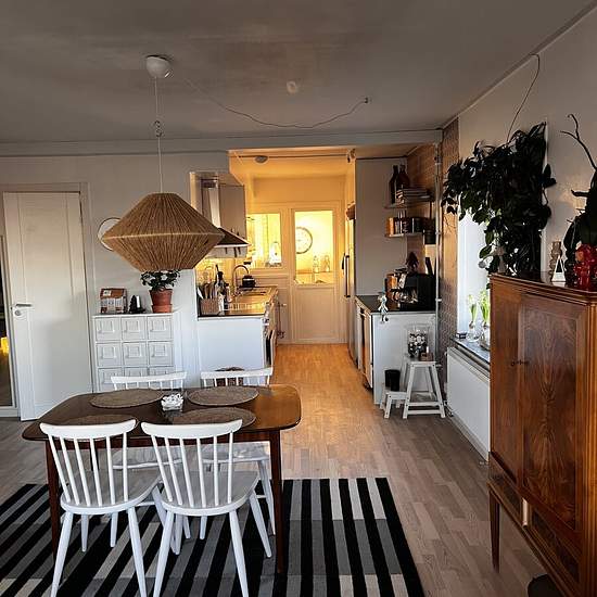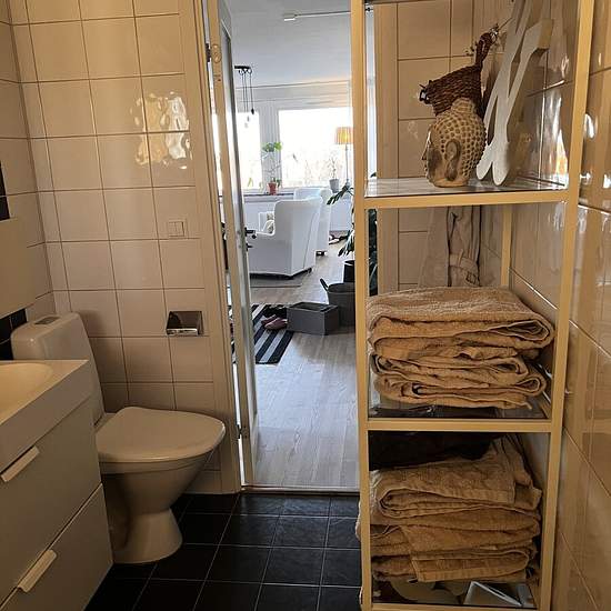 En ljus lägenhet på tredje våningen med stora fönster och öppen planlösning i kök och allrum. Stor inglasad balkong med förmiddags sol. Carport, el, internet och värme ingår i hyran. Nära campus och sjukhus med goda lokaltrafik förbindelser alldeles runt hörnet. 20 minuters promenad till stadskärnan. Hyr ut bostanden p.g.a arbete på annan ort. Serviceavgift för hyresgäst: 569