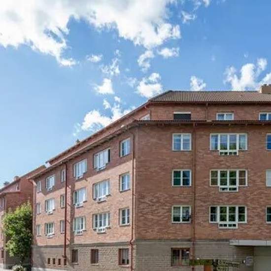 Central 4-rummare i etage om hela 109 kvm! Entreplan: Välkomnande hall med vita väggar och plastmatta på golvet. Kök med matplats. Vita köksluckor och vitmålade väggar. Grå plastmatta på golvet. Vardagsrum med parkettgolv och vita väggar. Sovrum med grå plastmatta och vita väggar. Halvkaklat badrum med plastmatta på golvet och kaklade väggar. Förberett för tvättmaskin och torktumlare. Plan 2: Inrymmer hall. Klädkammare och 2 väl tilltagna sovrum samt halvkaklat badrum med dusch. Möjlighet finns att hyra garage i källaren. Garageplat...