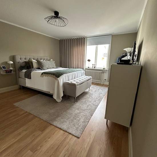 En central lägenhet med stora och luftiga utrymmen. Balkong mot innergård där även parkering finns att hyra. Visning ordnas löpande.