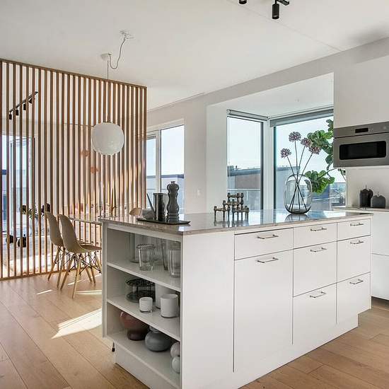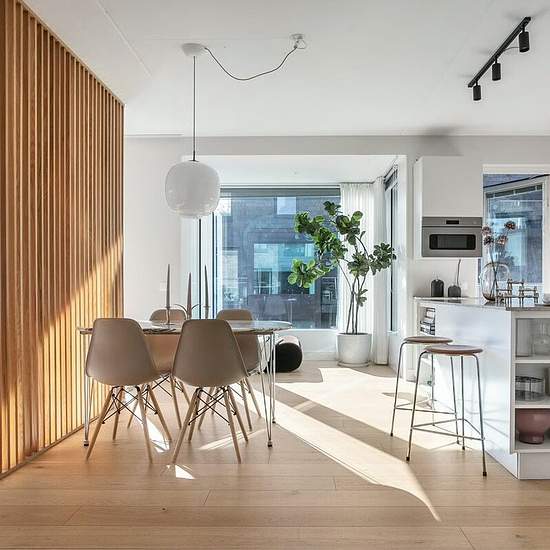 En 4:a rok i sydvästläge och sol hela dagen, balkong i högt fritt läge där inget finns ovanför som ger ett fantastiskt ljusinsläpp från fönster i söder och västerläge. Med bara 50m ner till vattnet där badplats, båtbryggor och restauranger finns. Välplanerad lägenhet med exklusiva detaljer med ett genomgående vitpigmenterad ekparkettgolv med golvvärme, vackra trädetaljer och stora fönsterpartier. Vedumkök med gott om förvaring, kompletterat med extra lådor och skåp och en vacker ekspaljé mellan kök och vardagsrum. Badrum med tvätt och tor...