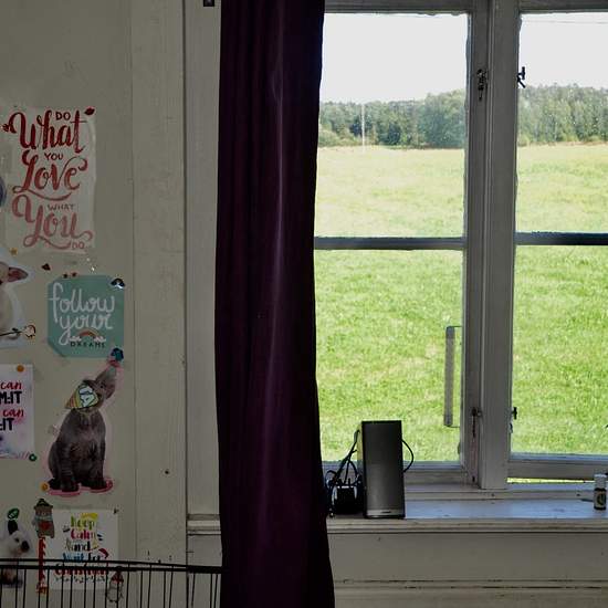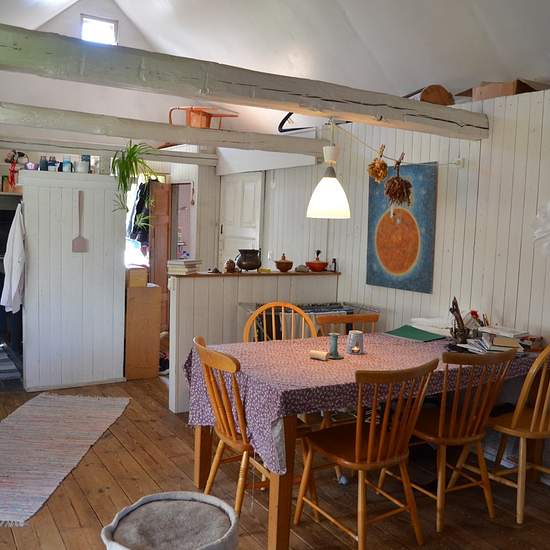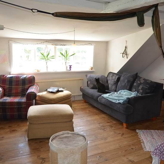 Bostaden ligger på övervåningen till ett gammalt charmigt stenhus. Full takhöjd. Rymligt vardagsrum möblerat med fåtöljer, soffbord, bokhylla, matgrupp och ny kamin samt ny luft-luftvärmepump. Utsikt mot trädgården på gårdens baksida. Ett mindre kök med köksbord, kyl, frys, ny diskmaskin, ny spis och ny fläkt. Tre sovrum med sängar och sovloft i ett av rummen. Utsikt mot ängar med betande kor. Vackra trägolv. Ett annorlunda boende! (Notera att allt, även värme och hushållsel, ingår i hyran!) Bilderna visar inte hur lägenheten är möblerad i n...