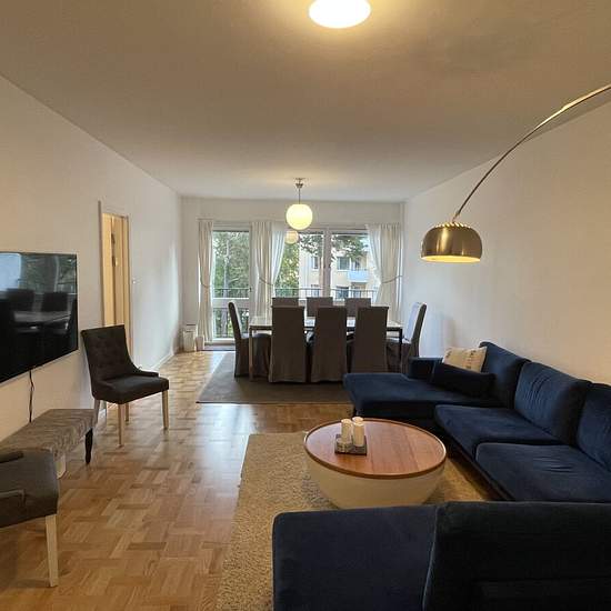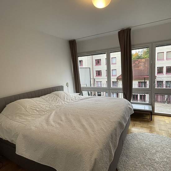Totalrenoverad ljus lägenhet på bästa läge! Våningsplan 3/6, hiss finns. Tre sovrum (sängar i sovrummen- kingsize, 160 cm, 140 cm och 110 cm). En toalett med handfat samt ett badrum med handfat och dusch. I badrummet finns även tvättmaskin och torktumlare. Det finns även gemensam tvättstuga i källaren. Balkonger i två väderstreck. Uthyres möblerad. (Sängkläder och handdukar ingår ej) 1:ans buss som tar dig till centrala Stockholm utanför dörren samt mycket nära till tunnelbanan. Många mataffärer och restauranger i närheten. Grönområ...