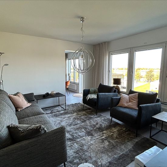 Välkommen till en trivsam och välplanerad fyra med gott om plats för hela familjen. Lägenheten erbjuder en genomtänkt planlösning med generösa sällskapsytor och fina ljusinsläpp som skapar en inbjudande atmosfär. Det funktionella köket har bra arbetsytor och är utrustat med diskmaskin samt separat kyl och frys. Härifrån når du även bostadens härliga balkong – en perfekt plats för morgonkaffet. Badrummet har helkaklade väggar, klinkergolv och duschplats. Lägenheten saknar möjlighet till installation av tvättmaskin. Välkommen till en trivsam ...
