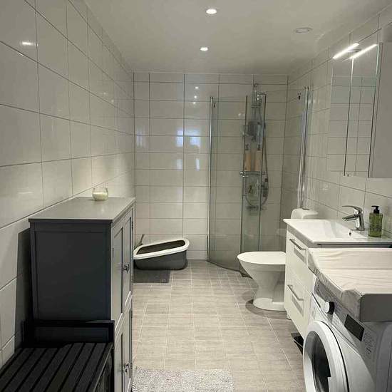 Välkommen till en fin och välplanerad lägenhet med vitmålade väggar och parkettgolv som skapar en ljus och trivsam känsla i hela hemmet. Här bor du bekvämt i ett modernt boende med hög standard och egen balkong. Köket är stilrent med vita köksluckor, vitt kakel samt mikrovågsugn, diskmaskin och bra förvaringsmöjligheter. Badrummet är fräscht med grått klinkergolv med golvvärme och vitt kakel på väggarna. Här finns dusch med dörrar, separat tvättmaskin och torktumlare, kommod under handfatet och spegelskåp med inbyggd belysning. Lägenheten ...