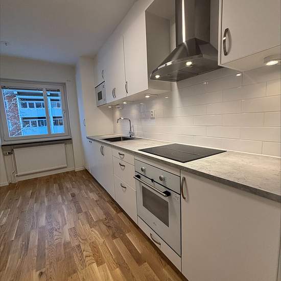 Välkommen till en delvis renoverad 4 rok med balkong på Teg! Lägenheten erbjuder tre rymliga sovrum med ljusa väggar och trägolv. I hallen möts du av slitstarkt klinkergolv och gott om utrymme. Vardagsrummet är ljust och luftigt med plats för både soffgrupp och matdel och här går du ut till balkongen. Badrummet är äldre men har vitt kakel och grå klinker, badrumsskåp och dusch. Köket är helrenoverat. Modernt med vita skåpluckor, ugn med häll, inbyggnadsmikro, diskmaskin samt hel kyl och frys. Här bor du nära förskola, skola, mataffär och ...