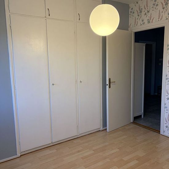 Ljus 4:a i mycket fint skikt med fönster i två väderstreck, en balkong med morgonsol fram till kl.15 på eftermiddagen. Lägenheten har närhet till grönområde och affärer. Det finns tre stora sovrum och ett stort vardagsrum som går över i kök. Lägenheten har även bra möjlighet till förvaring med inbyggda garderober i två sovrum och i hallen. Badrummet har dusch. Det finns gym i föreningen och övernattningslägenhet som går att hyra för en symbolisk summa.