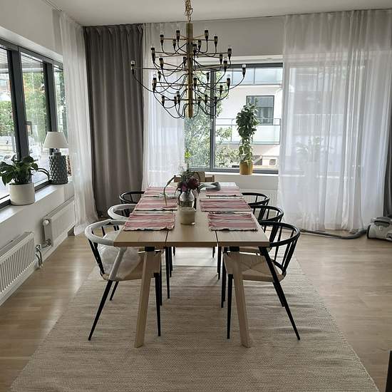 Rymlig & stilfull fyra på 130,5 kvm med fantastiska ytor att trivas i och en planlösning som är lika social som funktionell och där gavelläget ger ett fantastiskt ljusflöde från tre väderstreck och en härlig känsla av rymd. 3 sovrum där det största har en liten walk-in-closet/klädkammare 2 smakfulla helkaklade badrum med hög standard 1 klädkammare/förråd Inglasad uteplats i lugnt & skyddat läge mot den privata innergården 1 våning upp 1 förråd i källaren Gemensamma utrymmen: bastu och övernattningslägenhet Serviceavgift för hyresgäst: 791
