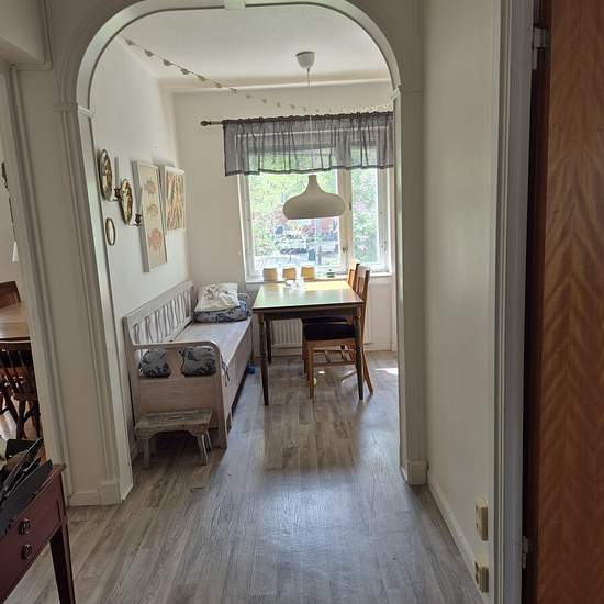 Ljus charmig hörnlägenhet med 4 rum och kök på en 1/2 trappa. Det finns två större sovrum och ett mindre. Ett badrum med dusch. Balkong. Möblerad. Nära till kommunikationer, natur och hav. Inga husdjur. Serviceavgift för hyresgäst: 818