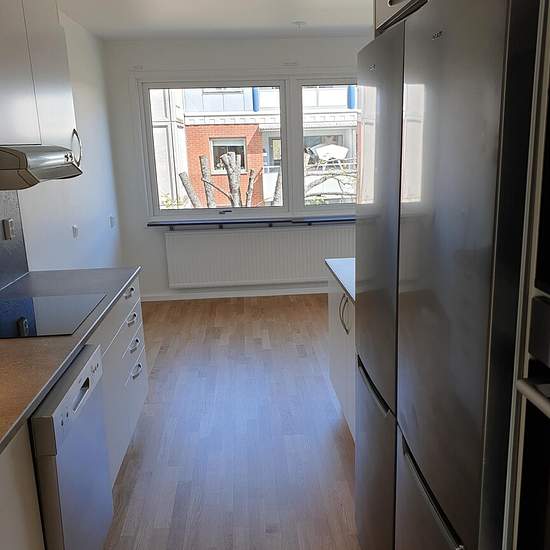 Det här är en successionsrenoverad lägenhet - dvs helt nyrenoverad för några år sedan! Nytt och modernt kök med rostfria vitvaror, laminatbänkskivor och induktionshäll, diskmaskin och inbyggd ugn och mikrovågsugn. Nytt, helkaklat badrum med kommod och handfat, dusch- hörna i glas samt golvvärme samt tvättmaskin och torktumlare. Toalettrum: kakel och klinker och toalett och handfat. Balkong finns i anslutning till vardagsrummet. All golvyta är av parkett och väggarna är vitmålade. Se bifogade exempelbilder samt planlösning (som visar hur det ...