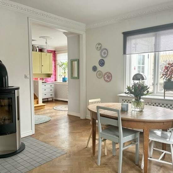 Detta är ett charmigt hus i genuin 20-talskänsla som är beläget i området Nockebyhov i Bromma. Det ljusgula trähuset bjuder på ett entréplan med hall, kök och vardagsrum med matplats. Vardagsrummet centreras kring en vändbar kamin som sprider såväl värme som hemtrevnad. Det fullt utrustade köket, som har en öppen planlösning mot vardagsrum, renoverades 2014 och är modernt och ljust med bänkskiva i marmor, stilrena vitvaror och elegant induktionshäll. Övre plan är ett klassiskt sovplan med hall samt tre sovrum, WC i anslutning till ett utav s...